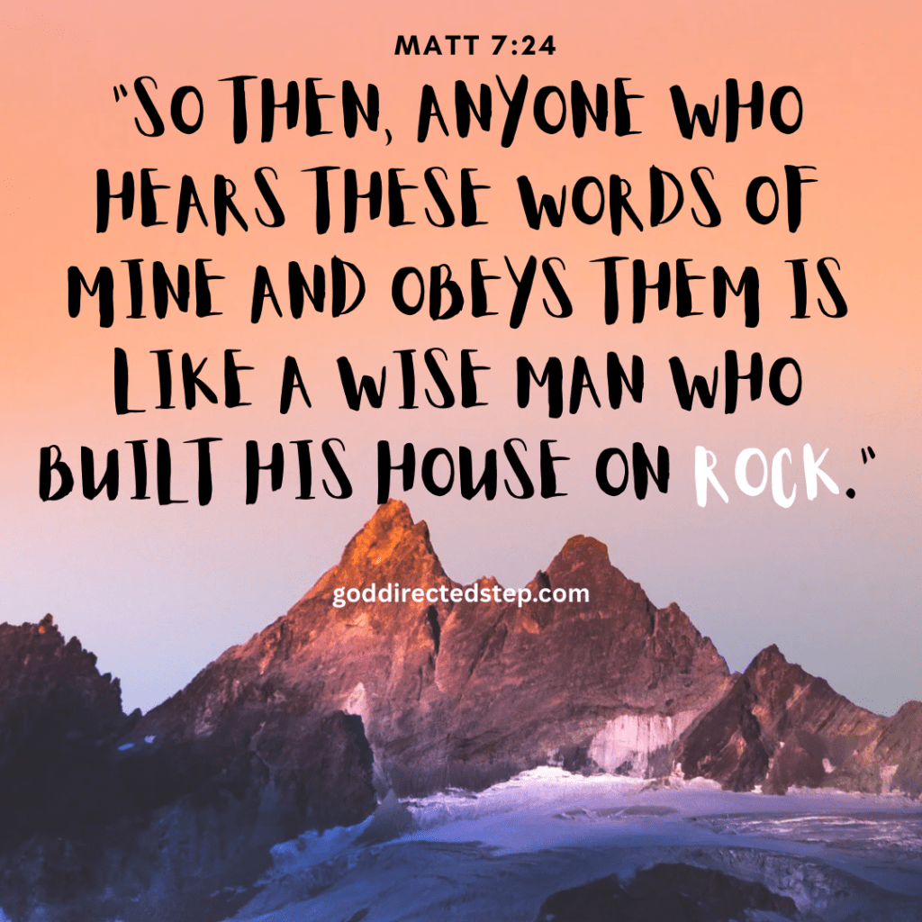 “The rain came down, the streams rose, and the winds blew and beat against that house; yet it did not fall, because it had its foundation on the rock.”. Matthew 7:25 (NIV)